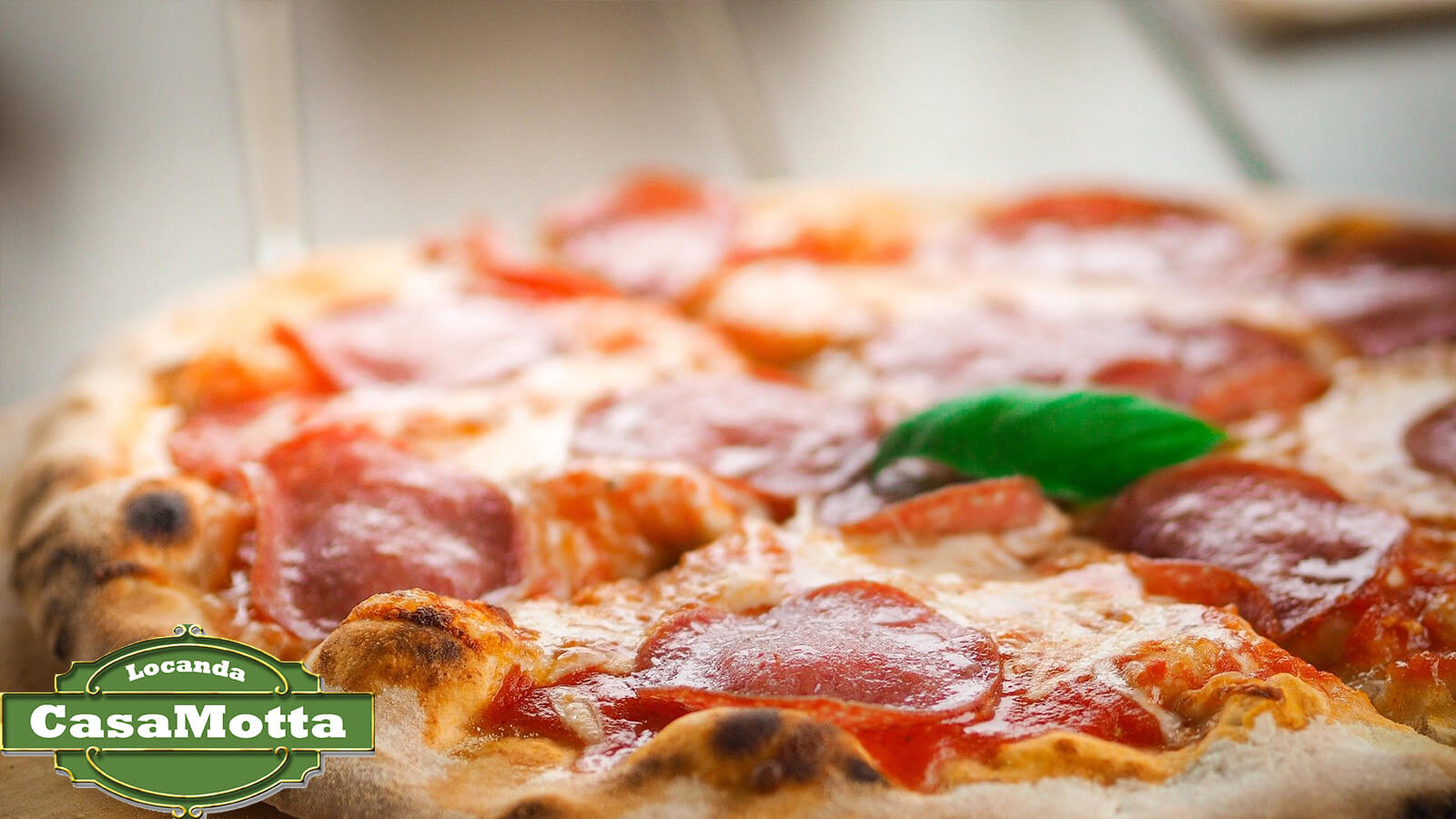 Pom., Moz., cooked ham, saisic, artichokes, mushrooms, olives.